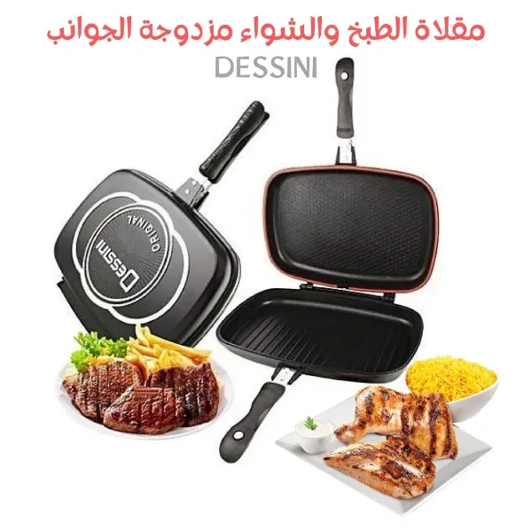 Dessini مقلاة الطبخ والشواء مزدوجة الجوانب الاطالية مانع للالتصاق
